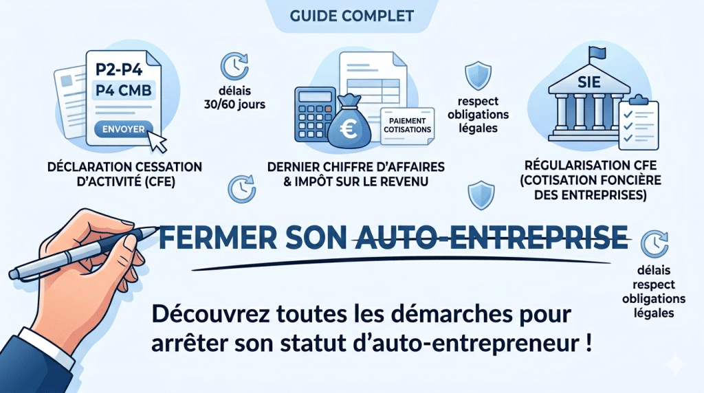 La première étape consiste à déclarer la cessation d’activité via le CFE, suivie de la déclaration du dernier chiffre d’affaires et du paiement des cotisations sociales. Une déclaration complémentaire d’impôt sur le revenu est également պահանջée dans un délai précis. Selon la situation, une déclaration de TVA peut être obligatoire. Il est aussi nécessaire de régulariser la cotisation foncière des entreprises. Une bonne organisation permet d’assurer une fermeture conforme, d’éviter les erreurs administratives et de respecter les obligations légales liées au statut d’auto-entrepreneur.